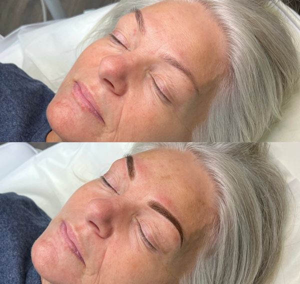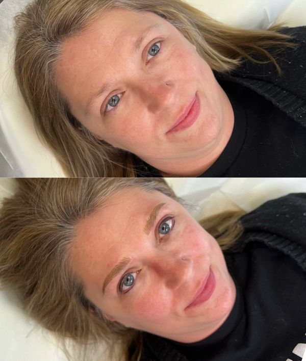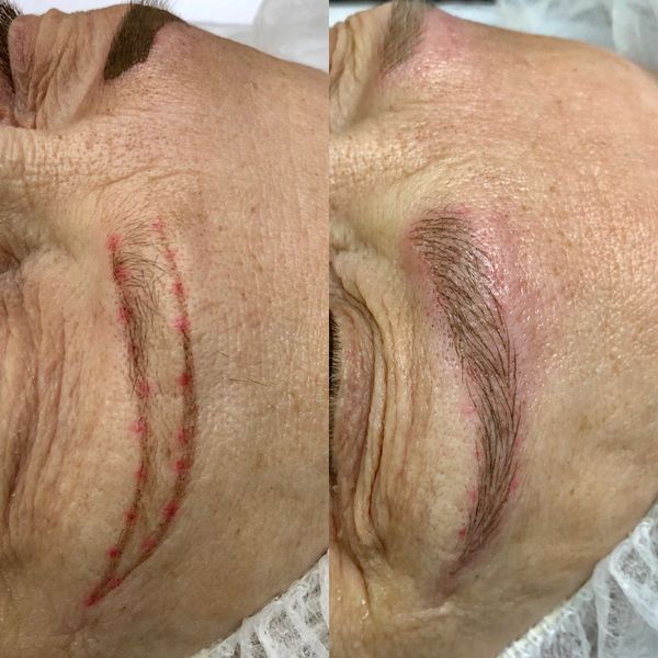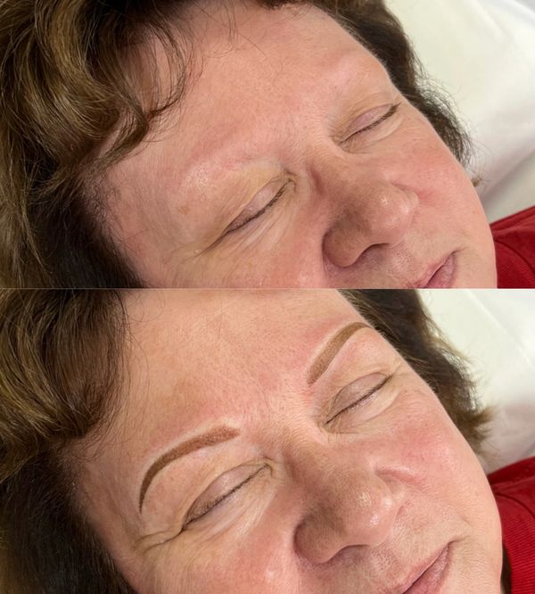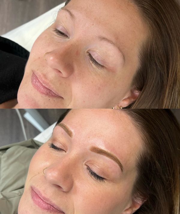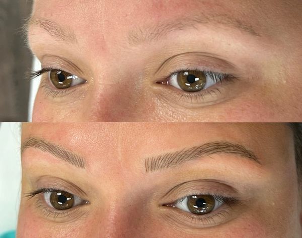 Machine Hairstroke brows + some shading, before & directly after the procedure